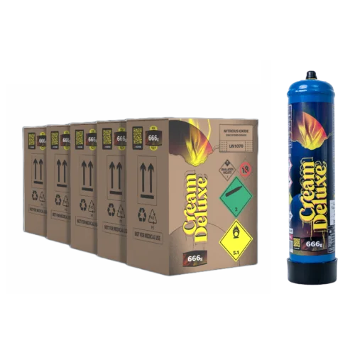 Cream Deluxe 666g N2O. Maximize your creative potential with the Cream Deluxe 666g N2O Cream Charger. This extensive set is perfect for those who value efficiency and exceptional quality in their mixology or culinary ventures.